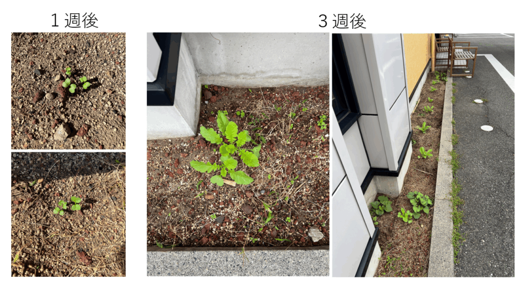ところで先月にタネまきした大根ですが、かわいい葉っぱを出してくれました。毎日少しずつ成長していく様子を見るのが楽しみではありますが、もう少し大きくなったら間引きしないと。と考えているところです。そして収穫したサツマイモの茎の残骸が、また根付いて葉も出してきているようです。たくましいので、しばらくそのままにしておいてみたいと思います。