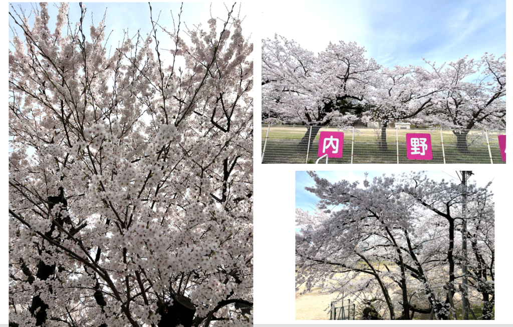 昨日は、内野小学校前の桜をつかの間の昼休み時間に散策で楽しんできました。先週末は7分先くらいだったのが、一気に満開となっていました。今年も綺麗な桜が、賑やかに私たちを喜ばせてくれています。今週は天気がすぐれないようで、この満開がどこまで持つのか気になるところですね。